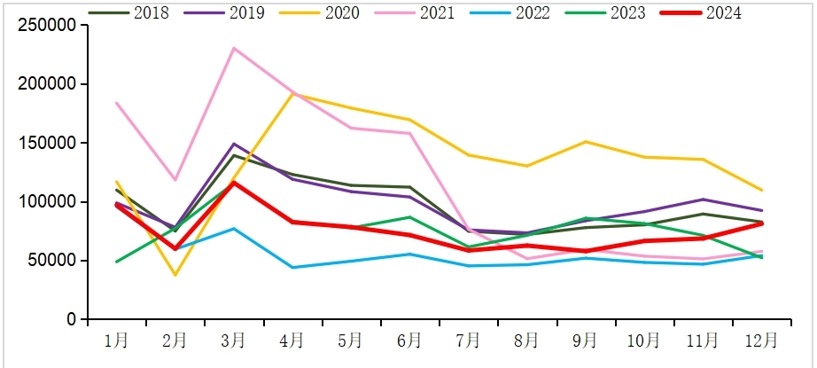 2018-2024 Monthly Sales Chart of China’s Heavy-Duty Truck Market(Unit:units)