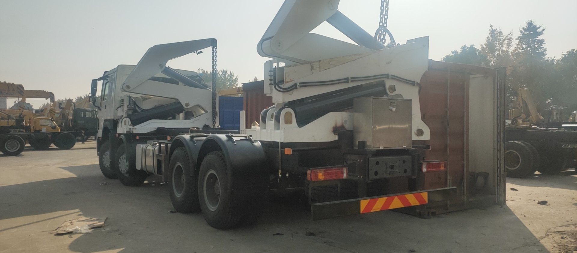 The semi-trailer combines two critical functions—container lifting and transport—eliminating the need for separate equipment. This integration reduces operational costs and improves workflow efficiency, ideal for businesses aiming to streamline logistics.